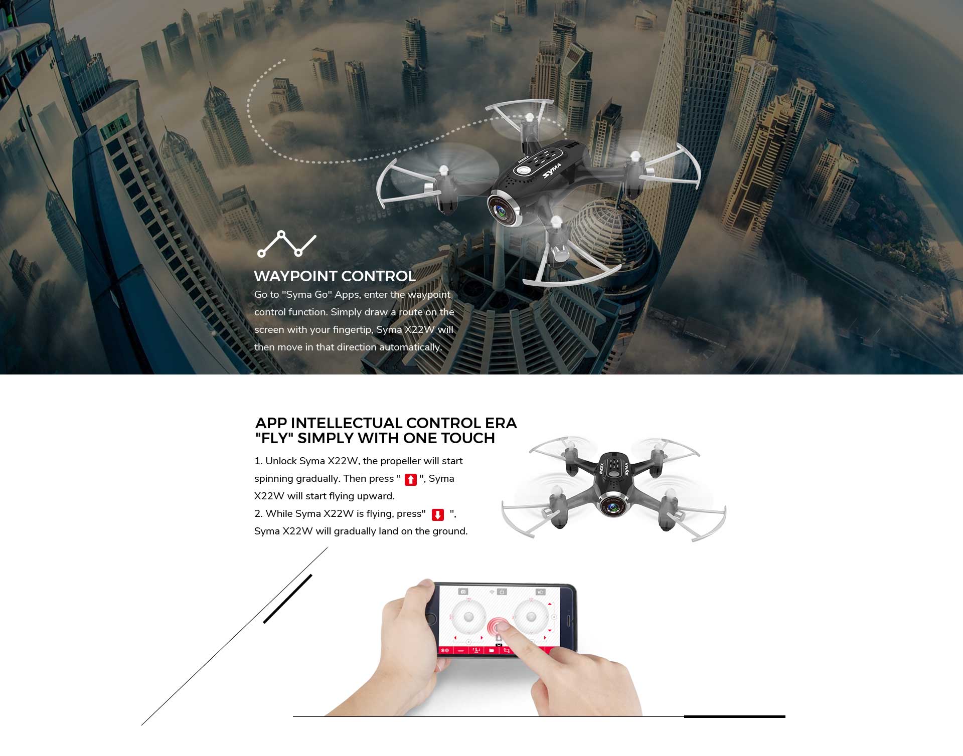 • با نصب اپلیکیشن “Syma Fly” یا از طریق کنترل‌های روی گوشی، می‌توانی مسیر پرواز را با لمس تعیین کنی و کوادروتور به‌صورت خودکار پرواز می‌کند (Flight Plan).
